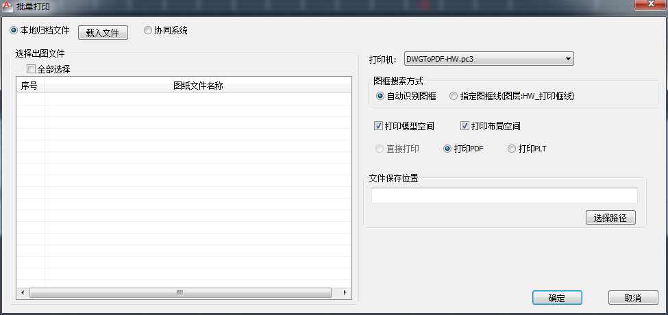 功能:批量自动打印文件,可直接打印、打印PDF或者打印PLT文件(打印PDF>和PLT文件可自动根据图名和图号命名文件,但功能内置默认只识别标准图框,其他设计院图框请联系作者添加)。